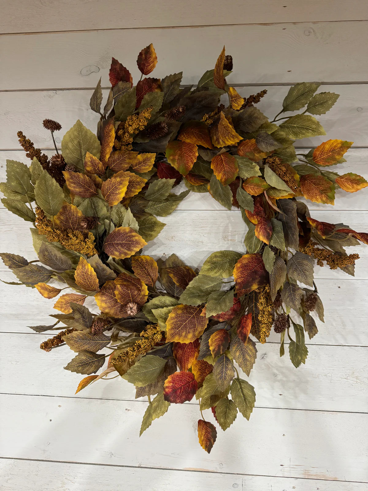 Layered with a striking combination of green and orange birch tree leavesāa nod to New Hampshireās state treeāand wisps of fall brown rice stems, this wreath brings a natural, woodsy elegance to any space. Whether hung on a covered porch or inside your entryway, Autumn Grace is all about bringing the outdoors in, without the mess!